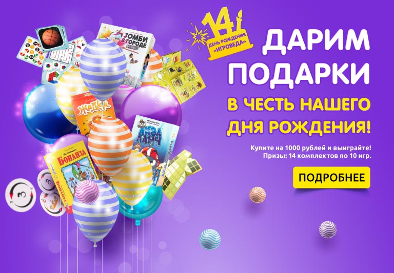 Наши игроведы-консультанты прекрасно разбираются в настолках и помогут купить настольную игру именно для вашей ситуации. Оформим заказ, быстро доставим или пригласим в наши фирменные магазины Игровед - пишите в чат или звоните ежедневно с 9:00 до 21:00: 8 (800) 555-51-43 (бесплатно по России), +7 (495) 668-06-08 (в Москве), +7 (812) 309-00-99 (в Санкт-Петербурге).