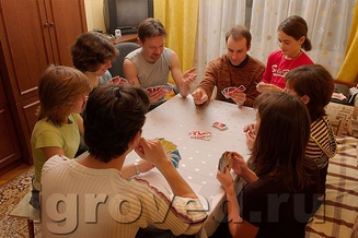 Число игроков: от 3 до 8 человек, можно и больше, если все смогут дотянуться до карты ответа ;).
