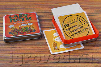 Блеф-пати – игра, которая добавит интриги вашему вечеру! Просто раздайте все гостям карточки с шуточными заданиями, и за успех вечера можно не волноваться. Прочитав свои задания, все участники пытаются их выполнить, одновременно стараясь подловить на выполнении других. Блеф-пати – игра "между делом", участники занимаются чем угодно и одновременно совершают странные поступки, то есть ищут возможность заработать очки :)