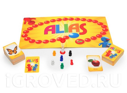 Состав настольной игры Алиас для малышей: игровое поле, 250 карт, 6 фишек и песочные часы из пластика, правила игры. Настольная игра «Alias Junior» или «Скажи иначе для малышей» продолжает серию словесных командных настольных игр «Alias». Цель игры осталась неизменной. Участники объясняют друг другу слова, описывая их, при этом не называя самих слов, а лишь пробуя подтолкнуть к разгадке своего партнера по команде. Вы можете использовать синонимы или антонимы, намеки, имитировать звуки или изображать – выбор за вами! Главное – угадать слово!