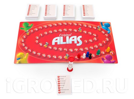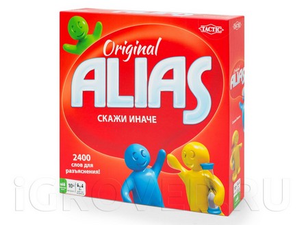 Игра ведётся на время: чем больше слов сможет отгадать команда, тем больше очков она получит. В игре «Alias» или «Скажи иначе» нужно объяснить другими словами разгадываемое слово. Игра ведётся на время: чем больше слов сможет отгадать команда, тем больше очков она получит. Во время объяснения слова можно использовать синонимы и антонимы, главное не использовать однокоренные слова. В игре 300 карточек, на которых 2400 слов и словосочетаний для разгадывания.