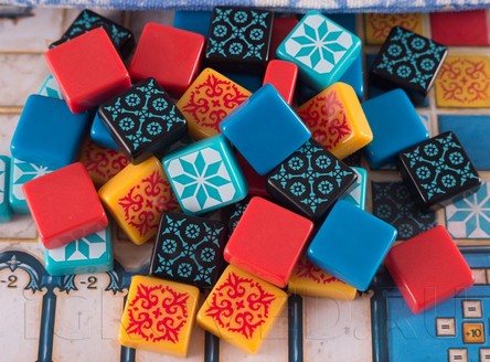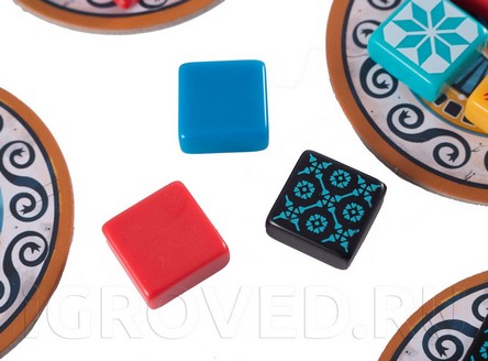 Спрос и предложение. Создание декоративной плитки – трудоёмкий и долгий процесс, поэтому мастерам, готовящим свои стены к облицовке, придётся в буквальном смысле сражаться за предложения Фабрики, производящей драгоценные азулежу. От количества игроков в настольной игре Азул зависит количество складов с готовой плиткой, каждый из которых в начале раунда предлагает всего четыре случайным образом выпавших изразца. В свой ход мастер может взять все плитки одного цвета либо с одного из складов, либо из центра стола, куда попадают остатки со складов. Но будьте внимательны – плитки, которые вы взяли, должны быть непременно размещены на одну из линий узоров на вашем планшете, а всё, что туда не поместится, попадёт на линию пола и превратится в конце раунда в штрафные очки.