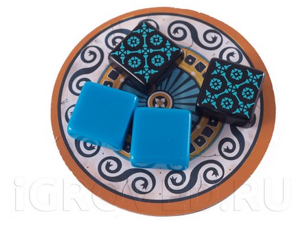 100 плиток на 4 стены. В состав настольной игры Азул (Azul) входят: 9 дисков Складов, 100 жетонов плиток (по 20 каждой из 5 расцветок), 4 планшета игрока, специальный мешочек, 4 фишки победных очков, фишка первого игрока, правила игры.