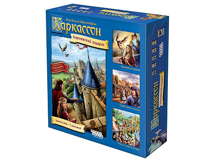 Каркассон. Королевский подарок – интереснейший набор, включающий базовую игру Каркассон и 5 дополнений к нему: «Река», «Аббат», «Мосты, замки и базары», «Принцесса и дракон», «Граф, король и культ».