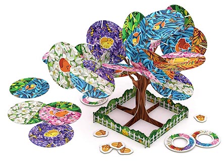 Это не просто чудо-дерево, а чудо-игра на координацию, ловкость и умение заранее понять, что будет после твоего действия. Вписать в баланс игры аккуратные движения и при этом не потерять именно игровой процесс не так-то просто, но авторам это удалось: игра состоит из красочных балансирующих карточек на дереве, но карточки "вешать" надо не просто так, а ловко по цветам и порой, зарабатывая определённые бонусы-эффекты, что добавляет игре дополнительный интерес и стратегическую глубину.
