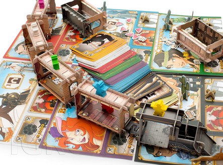 Пока дымит паровоз. Игровое поле в Кольт экспресс представляет собой объемный картонный поезд, состоящий из шести вагонов и локомотива. На протяжении пяти раундов игры участники будут перемещать фигурки бандитов по экспрессу, стараясь награбить как можно больше. У кого в конце игры соберётся самый гигантский куш – тот и победил.