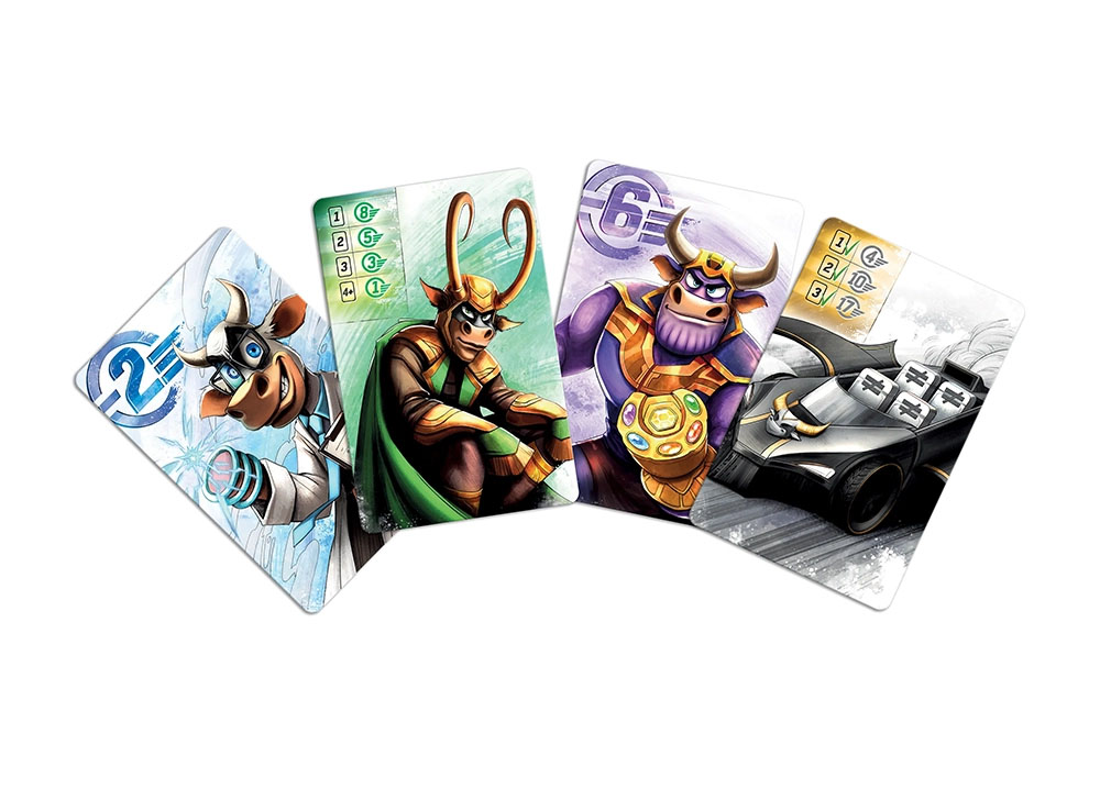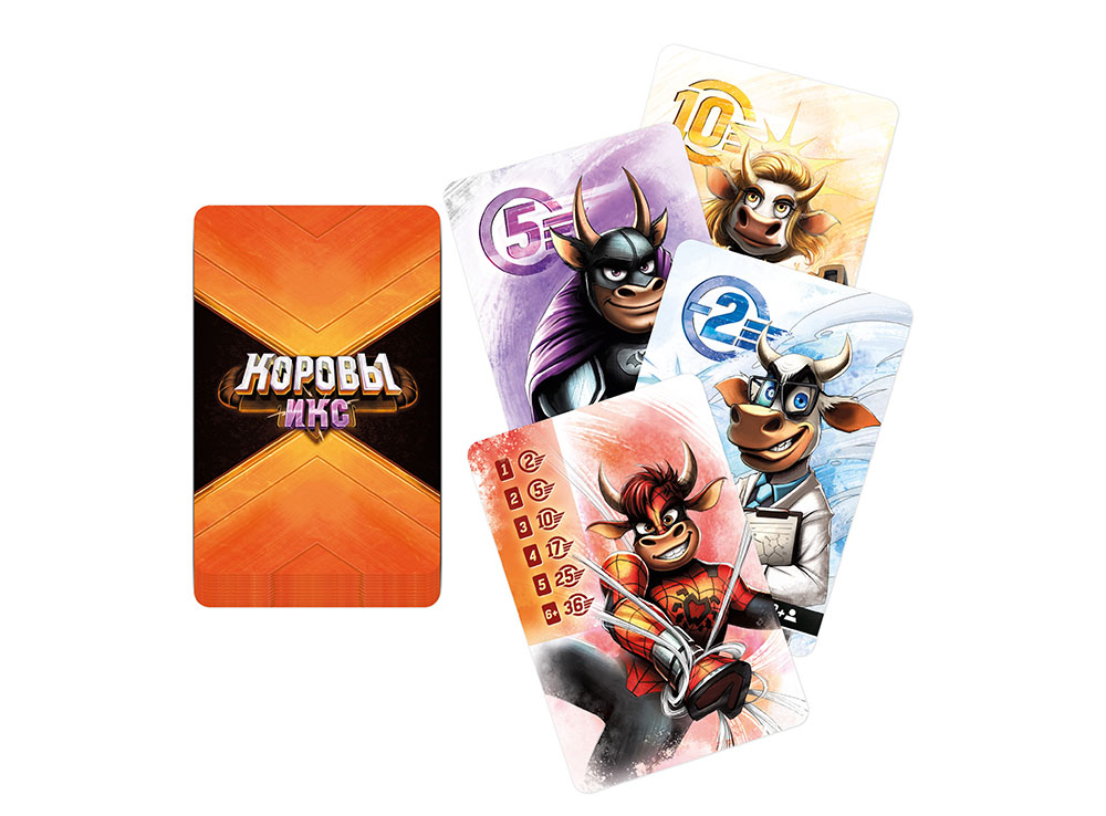 В состав настольной игры «Коровы ИКС» входит: 112 карт, блокнот, правила игры.