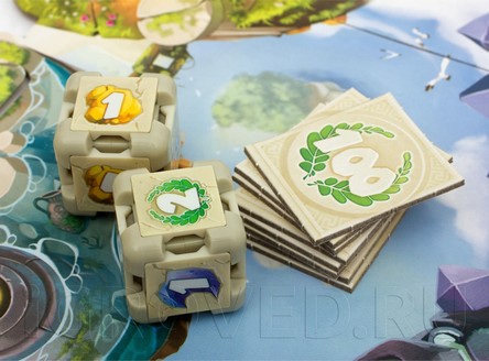 У каждого игрока есть 2 кубика, которые они могут модифицировать. Награды: