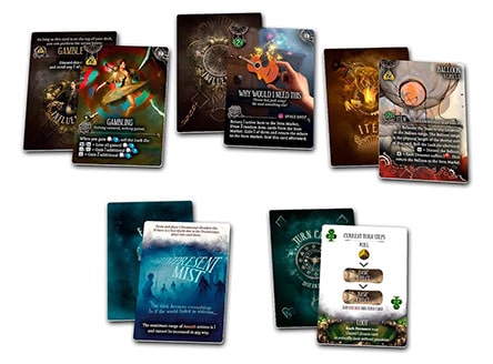 - 4 колоды влияния по 22 карточке в каждой,