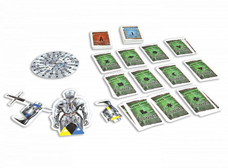 В состав настольной игры Exit. Таинственный замок входят: игровые карточки – 84 шт., странные предметы – 4 шт., книжка, диск декодер, правила игры