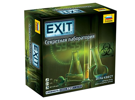 Коробка настольной игры Exit. Секретная лаборатория«Лёгкие деньги», – подумали вы, когда нашли объявление о том, что требуются испытуемые для медицинских исследований. Не долго думая, вы подписали договор на исследования в ближайшее время.