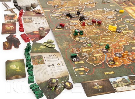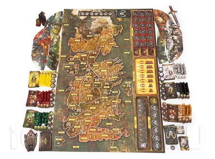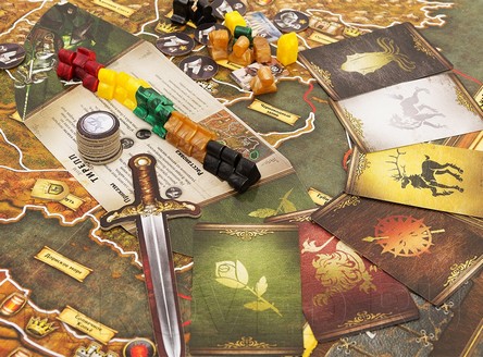 Влияние и власть. Конечно, в такой игре, как Игра Престолов невозможно обойтись без интриг и заговоров. На поле существуют три трека влияния: Железного Трона, Королевского двора и Вотчин. Борьба за эти треки осуществляется при помощи жетонов влияния, которые можно накопить в процессе игры. Дом, занявший первое деление на треке, получает некое преимущество. Также каждый из треков отвечает за какой-то определенный фактор в игре: трек Королевского двора определяет порядок хода Домов; трек Вотчин влияет на разрешение битвы при равенстве сил противников, а трек Королевского двора позволяет игрокам пользоваться особыми приказами.