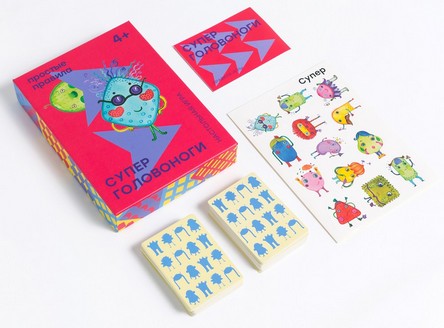 Компоненты настольной игры Супер ГоловоногиВ одной стильной коробке поселились сразу 2 семейства смешных существ! Настольная игра Супер Головоноги – это расширенная версия весёлой игры Головоноги. В коробке вас ждет 120 карт, а также наклейки.