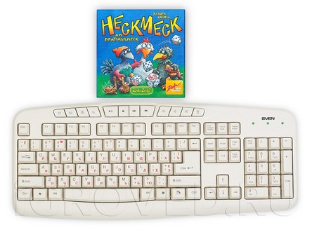 В комплект настольной игры Хекмек входит 16 костяшек номиналом от 21 до 36, 8 шестигранных кубиков и буклет с правилами игры на английском и немецком языках. Костяшки очень напоминают обыкновенное домино. Они сделаны из гладкого и приятного на ощупь пластика. Игральные кубики выполнены из дерева. Коробка с игрой компактна (13x13x4 см.) и легко умещается в самой маленькой сумке. Правила игры на русском языке мы прикладываем к каждому экземпляру игры.