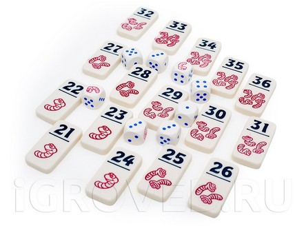 Хватай червяка! Если ход успешен, участник может завладеть одной из костяшек. Для этого подсчитайте сумму баллов, полученную в результате бросков кубиков, и заберите фишку, на которую у вас хватит очков. Положите её на стол перед собой (так у игроков образуются стопки). Участники, чей ход оказался проигранным не допускаются до червячков, более того: им предстоит вернуть на стол верхнюю костяшку из своей стопки. Победителем в настольной игре Хекмек становится тот, у кого в конце игры наберется самое большое число червячков.