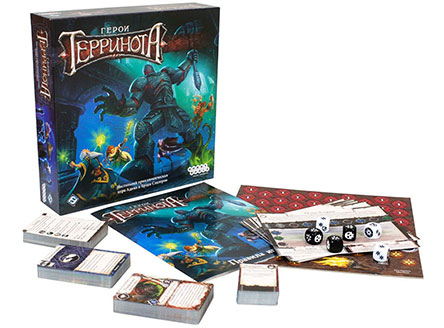 В состав настольной игры Герои Терринота входит: 8 планшетов приключений, 12 карт героев, 48 карт способностей, 65 карт врагов, 26 карт локаций, 37 карт исследования, 12 карт состояний, 5 карт дополнительных ходов, 4 карты-памятки, 40 жетонов ран, 23 жетона успехов, 14 жетонов продвижения, 1 жетон предводителя отряда, 1 жетон испытания, 6 кубиков, Правила игры.