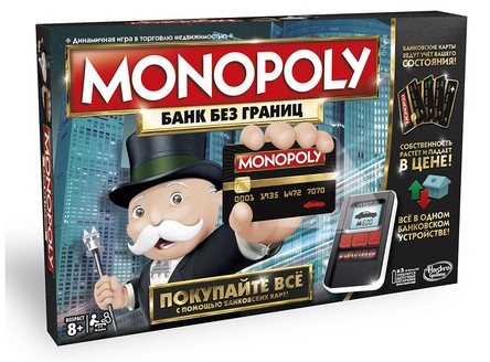 Компоненты настольной игры Монополия с банковскими картамиИзюминка настольной игры Монополия с банковскими картами – безналичная система расчётов между участниками при помощи пластиковых карточек и банковского терминала! Играйте и зарабатывайте на недвижимости! Вас ждёт успех!
