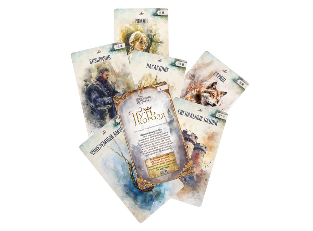 «Повороты судьбы» — карточная игра с уникальными картами в технике акварели, в которой от ваших решений зависит развитие сюжета и концовка игры.