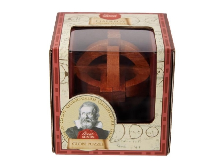 Настольная игра-головоломка Планета Галилео.Головоломка Планета Галилео (Galileo’s Globe Puzzle) входит в серию Великие Умы (Great Minds range), которая объединяет головоломки, проверенные временем, и связывает каждую из них с одним из величайших мыслителей. Историческая справка, размещённая на коробке, расскажет о личности и даст информацию о том, как связаны человек и головоломка. Оформление в винтажном стиле придаёт головоломкам благородный вид.