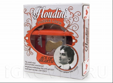 Сможете ли вы открыть хитрый замок?Головоломка Чудо замок (Ace of Hearts) входит в серию Замки Гудини (Houdini Puzzle Locks). Гудини - знаменитейший иллюзионист, прославившийся своими трюками с само-освобождением, мог взломать любой замок. Сможете ли вы? Эти хитрые замки не могут быть открыты, как обычные замки. Чтобы взломать замок, нужно разгадать «трюк». На протяжении многих лет эти головоломки были лучшими и наиболее популярными среди когда-либо изобретённых.