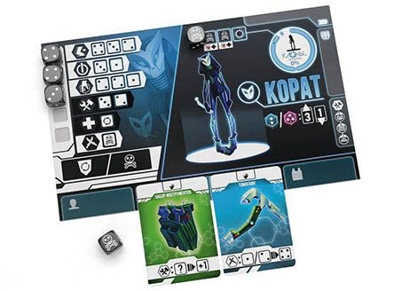 - Фаза действий. Игрок совершает действия, распределяя кубики по ячейкам действия на планшете персонажа и картах снаряжения. Затем он выполняет доступный ему набор различных действий, перемещается по локациям, вступает в бой с противником и после боя подсчитывает свой урон или свои победы.