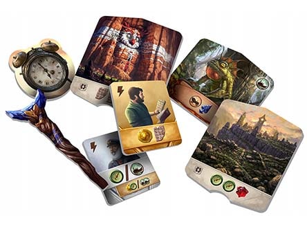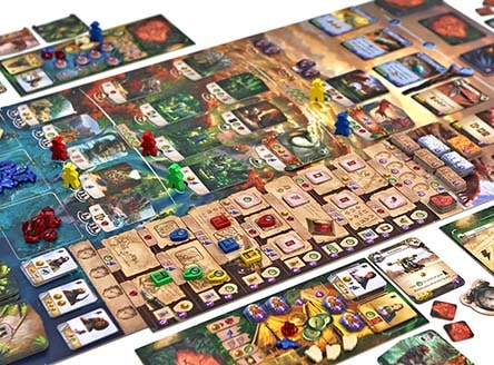 В состав игры входит: двухстороннее поле (разные уровни сложности); 4 двухсторонних планшета игрока (для обычной и одиночной игры); двухсторонний планшет резерва; 110 карт; 8 деревянных фигурок археологов; 8 жетонов исследования; 16 тайлов мест; 16 тайлов идолов; 15 тайлов стражей; 12 тайлов помощников; 18 тайлов наград за исследования; 24 тайла храма; 5 жетонов-заглушек; 15 тайлов противников (для соло-игры); 27 жетонов монет; 27 жетонов компасов; 16 пластиковых резных табличек; 12 пластиковых наконечников стрел; 9 пластиковых рубинов; 10 жетонов резерва; жетон лунного жезла; жетон первого игрока; 4 памятки; блокнот для подсчёта победных очков; правила игры.