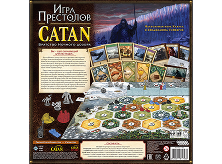 Колонизаторы или Игра Престолов. Вы можете сыграть в игру по базовым правилам Колонизаторов, а можете по сценарию Братство Ночного Дозора. В коробке вы множество миниатюр
