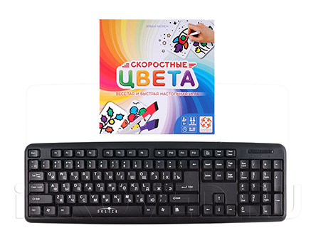 Компоненты настольной игры Скоростные цвета (квадратная коробка)Добавьте красок! Раскрасить попугая? Легче лёгкого! Красный хвост, жёлтый клюв… Ой нет, зелёный клюв и красный хвост! Или… В настольной игре Скоростные цвета игрокам предстоит за короткое время запомнить, как раскрашен образец картинки, а потом по памяти раскрасить свой чёрно-белый вариант точно так же, да ещё и сделать это быстрее всех!