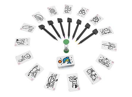 Примеры карточек, которые необходимо будет раскрасить по памятиПредставляем вам кооперативное продолжение популярной настольной игры «Скоростные цвета». Механика осталась прежней: игрокам необходимо запомнить цвета рисунка, а затем воспроизвести их по памяти как можно быстрее и точнее на черно-белой стороне карточки с изображением, но в игре появился фломастер-сюрприз! Его присутствие и действия, связанные с ним, удивляют и радуют даже самых опытных игроков. А еще в игру введены следующие варианты правил: