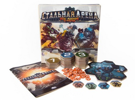 Компоненты настольной игры Стальная арена. Бои роботов по пятницам Добро пожаловать на постапокалиптические бои неутомимых роботов! Перед вами - Шоу боевых роботов по пятницам... Вернее то, что от него осталось.